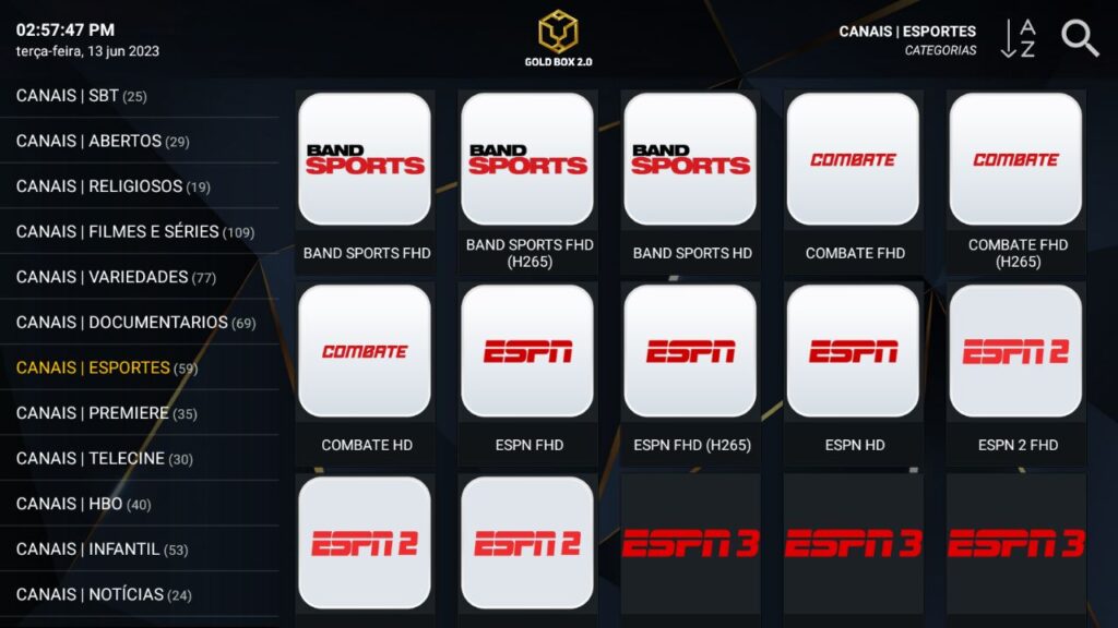 Tenha acesso a todos os canais ESPORTIVOS e assista os jogos do seu time do coração no conforto da sua casa. No PremiumFlix você conta com todos os canais esportivos, podendo assistir também, Basquete, Formula 1, UFC e muito mais…